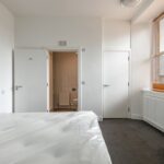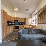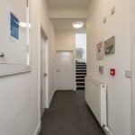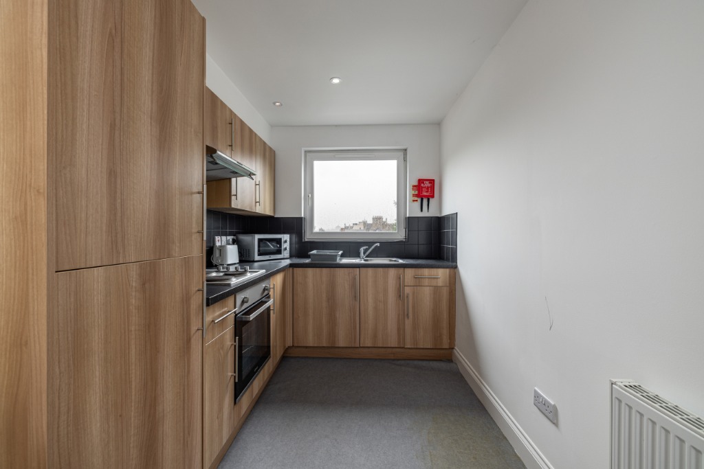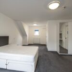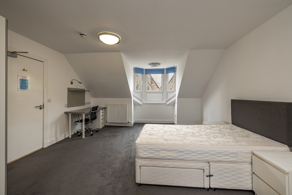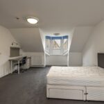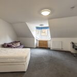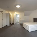 The interior is neutrally finished and well-maintained. The first floor hosts the main entrance hallway, a bright and sociable open-plan living/kitchen area, and three of the five en-suite bedrooms. Upstairs, the attic floor provides an additional kitchen, two further bedrooms, and a central landing, allowing for flexible shared living arrangements.