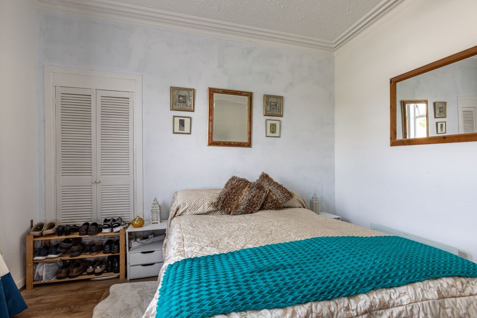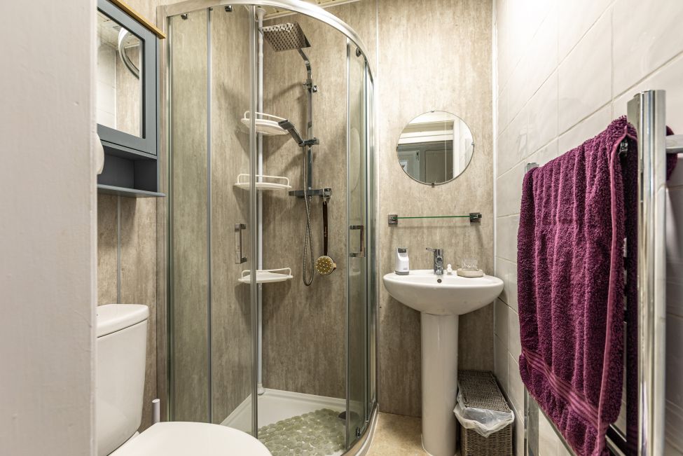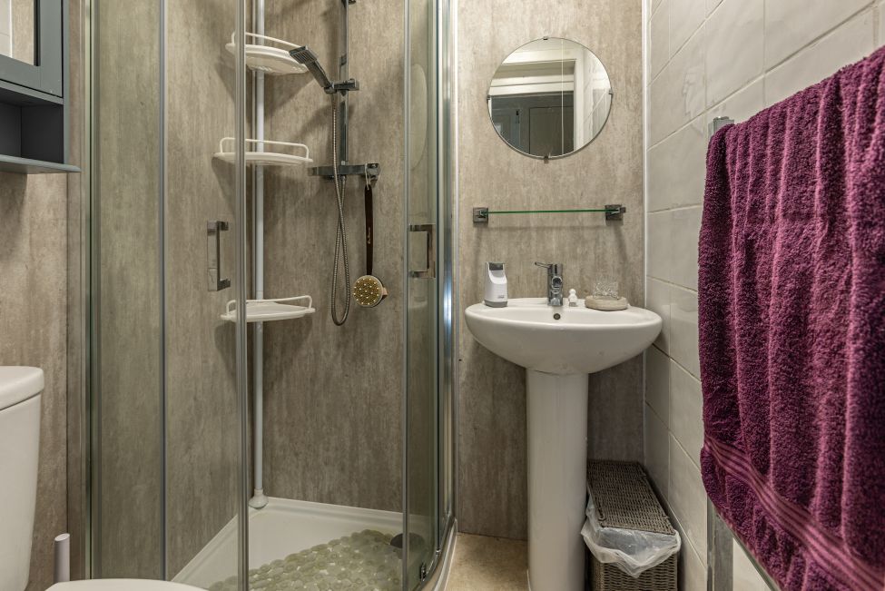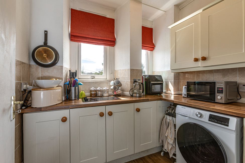 Internally the property extends to an approximate 52m2 and consists of the entrance hallway, living room, kitchen with a mix of wall and base units in cream, master bedroom with built in storage facilities, second bedroom which could also be utilised as a home office/study, and the modern shower room with walk-in shower, WC and wash hand basin. Externally, the property is home to well maintained communal garden grounds which enjoy a private aspect, and there is the additional benefit of a private brick built outhouse which provides generous storage space.