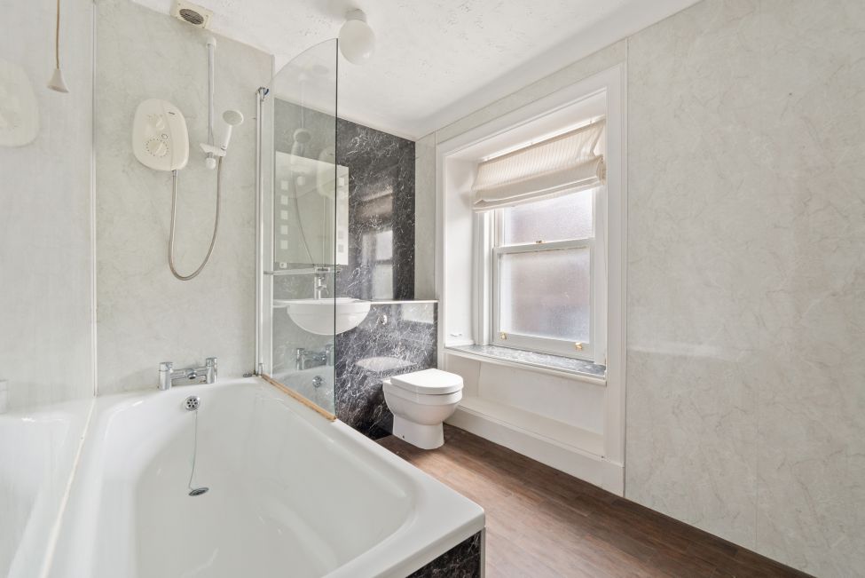 * Bathroom with over -bath shower