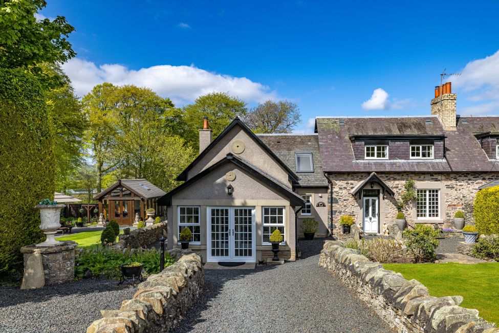 Accessed via an impressive gated entrance, 4 Hyndsidehill Cottages is a true hidden gem; occupying a quiet and extremely private setting yet just off the A697 providing quick and easy access to routes both north and south bound. Set upon expansive and immaculately maintained gardens, the property has been thoughtfully extended in the past to enhance the living accommodation; now providing a generously proportioned and versatile layout with the mezzanine level above the main lounge a particularly impressive focal point. The entire property is presented in excellent order and, as such, is truly ready to move into having been meticulously maintained by the present owner. Externally, the property boasts a variety of notable features such as an attractive detached sun room, external office with store room, a kennel, workshop, sheds, and the added benefit of a large drive ensuring parking for several vehicles.