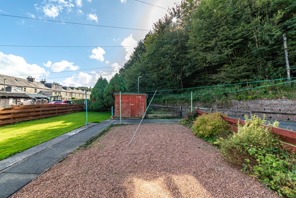 Outside, the property offers dual garden spaces - a small front garden and a larger rear garden featuring a useful shed, gravelled area, patio and parking space. These outdoor spaces provide versatile options for gardening enthusiasts or those wanting additional storage.