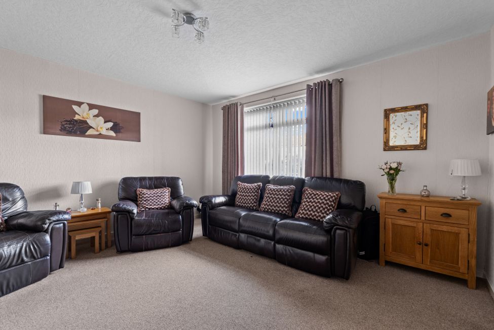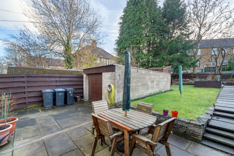 * A beautifully maintained rear garden with a generous lawn, flower beds, and patio area, perfect for outdoor dining and recreation. The front garden adds further curb appeal, with a private driveway providing off-street parking
