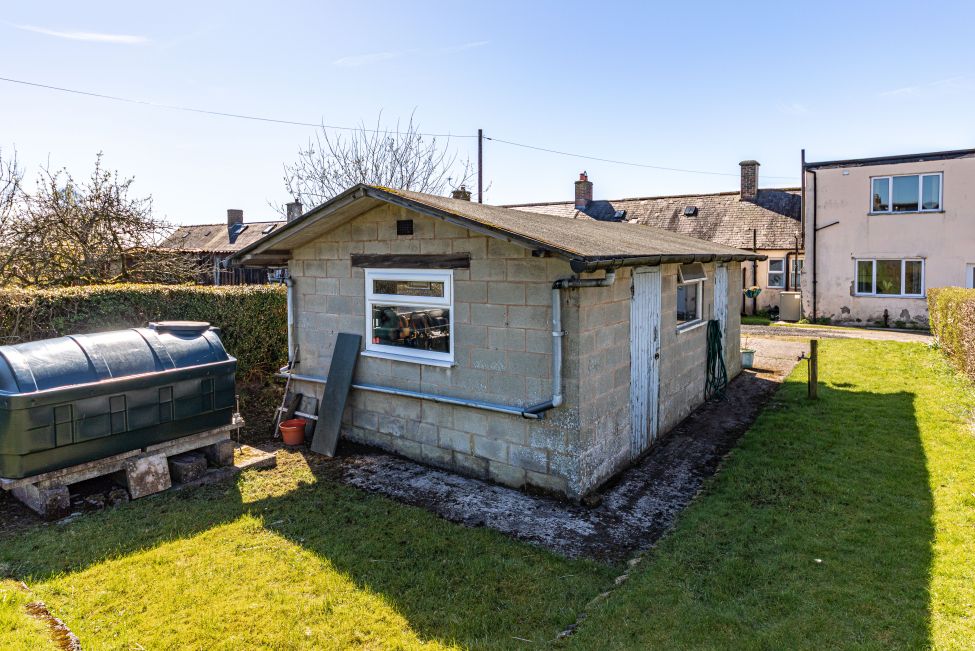 To the front of the property there are open and unspoilt views over the surrounding countryside. To the rear there is a good sized garden mainly in lawn, a gravelled parking area and a detached garage/workshop.