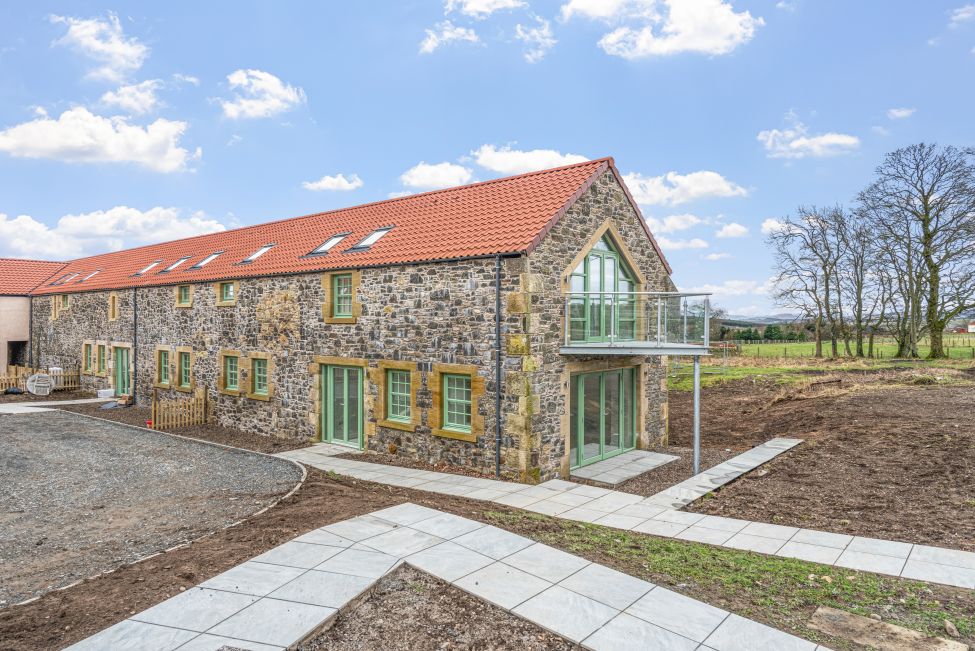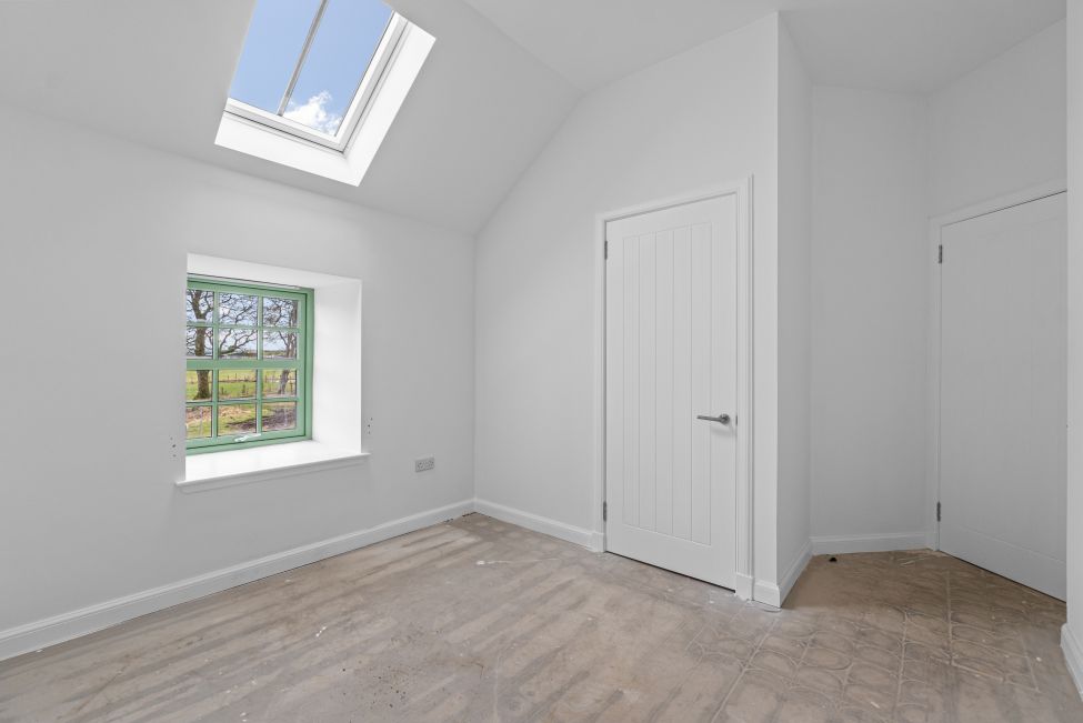 Newly built Willow Cottage is a charming end-terraced, stone-built home nestled within an exclusive steading development, offering a picturesque backdrop of rolling hills and countryside. Just 11 miles from the Edinburgh City Bypass, it provides the perfect balance between rural tranquility and convenient commuter links. The development of the site is based on low cost, sustainable and ecologically friendly processes in harmony with its rural setting. Expertly crafted using original stone, this newly finished cottage retains its historic charm while incorporating modern luxuries, including high-speed internet—ideal for remote working. Spanning approximately 117m², the versatile layout features lightfilled, well-proportioned rooms and a balcony designed to capture breathtaking panoramic views. Additionally, Willow Cottage comes with a 10-year new home warranty and dedicated parking for two vehicles. Accommodation