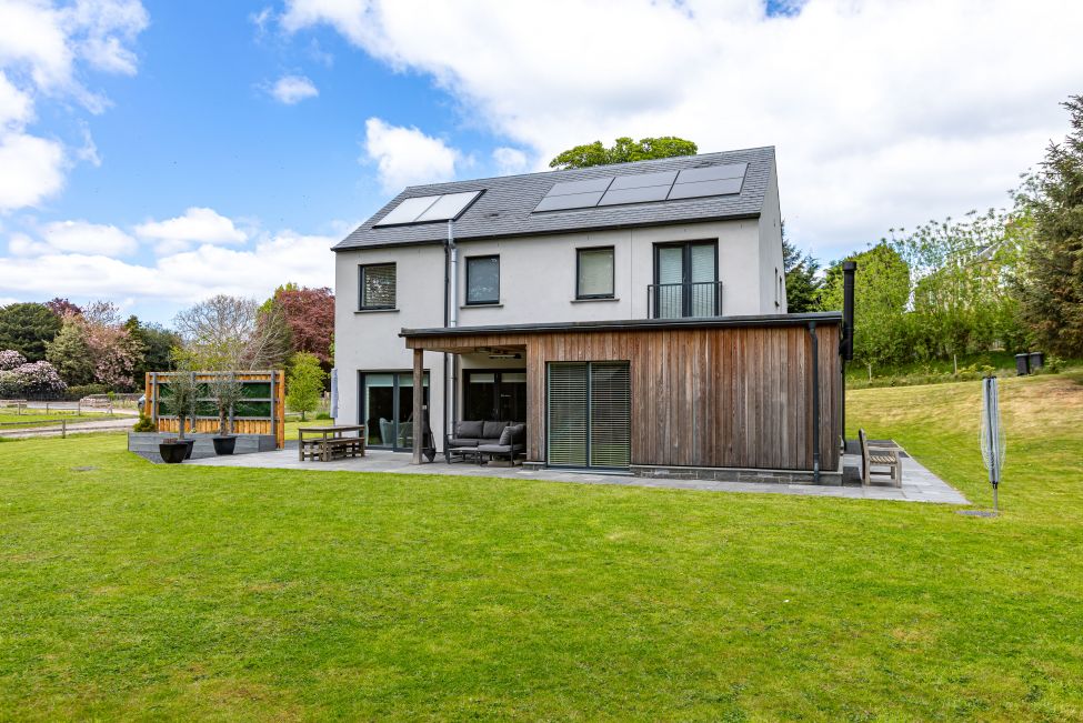 2 Wellnage Myre is a superior detached eco-friendly family home, set within expansive and beautifully maintained garden grounds. Designed with modern living and sustainability in mind, this impressive property combines contemporary comfort with outstanding energy efficiency. With an Energy Performance Certificate rating of A, the home benefits from both Solar PV and Solar Thermal, an air-to-air source heat pump, underfloor heating on the ground floor and a feature woodburning stove. The internal layout has been expertly planned to suit the needs of a modern family, with spacious, light-filled interiors that offer a seamless flow between open-plan living spaces and quieter, more private areas. Externally, the landscaped garden grounds provide a sense of privacy and plenty of outdoor space to enjoy. A double garage and private driveway add to the convenience, offering ample off-street parking. Early viewing is highly recommended to fully appreciate all that this exceptional home has to offer.
