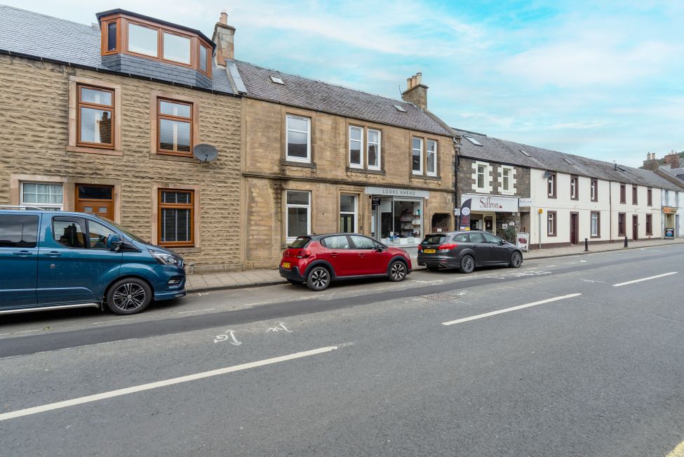 Situated in a prominent High Street location in the picturesque town of Innerleithen, this charming mid-terrace house offers wellproportioned accommodation spread over two levels, blending traditional character with comfortable living space. Built circa 1880, the property boasts a gross internal floor area of approximately 111m² and enjoys the added benefit of private garden grounds to the rear. Accommodation