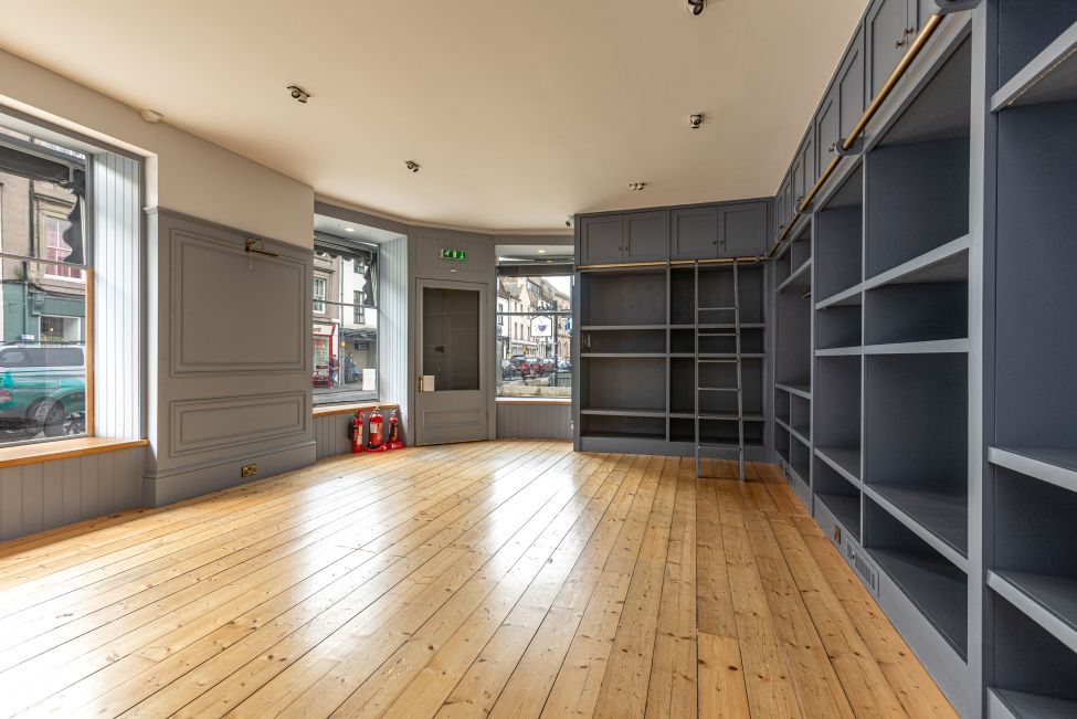 Occupying a prominent corner position at 22 Horsemarket, just east of Kelso town centre, this well-presented retail unit forms part of a mid-19th century, Category C Listed end-terraced building. The property is arranged over the ground floor of a two-storey plus attic-level structure, boasting a distinctive curved frontage and excellent visibility.