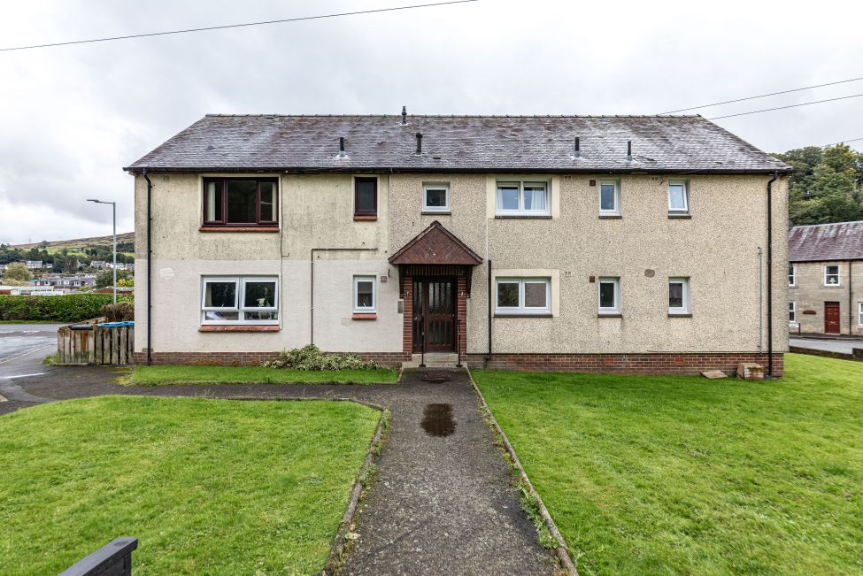 5 Meikleholm is a charming one-bedroom first floor flat nestled in a tranquil residential area on the outskirts of Langholm. This bright and spacious property with new flooring throughout offers a perfect blend of comfort and convenience, making it an ideal home for singles, couples, or professionals seeking a peaceful living environment. The flat boasts a welcoming interior with well-proportioned rooms that maximize living space. The gas central heating ensures year-round comfort, while double-glazed windows provide excellent insulation and reduce energy costs. The communal garden offers a shared outdoor space perfect for relaxation, either in the front communal garden or in the more private rear garden (with drying area) which is shared exclusively with neighbours from this block.