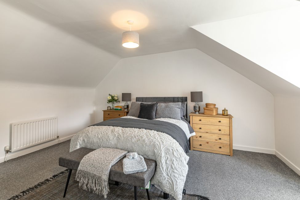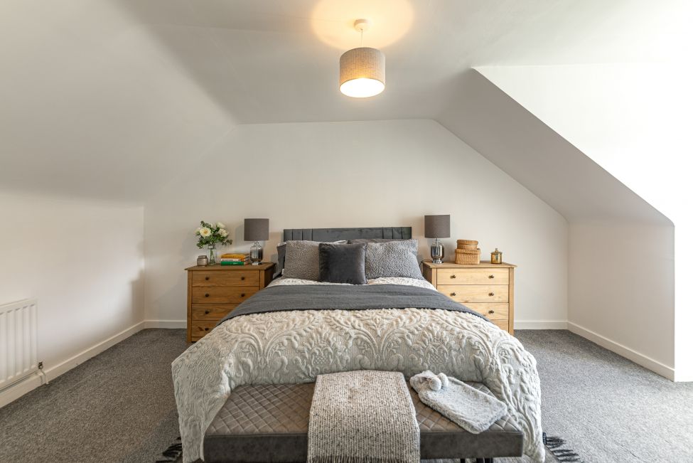 The property occupies the second and attic floors and internally comprises of the well appointed kitchen with a mix of wall & base units in white with laminate worktops, tile effect splashback & recessed ceiling spotlights - the living room is also positioned on the entry level and is very well proportioned with an abundance of light filling the space through the elegant sash & cash windows. The bathroom consists of the thermostatic shower over bath, WC and basin with a mix of tiles and painted surfaces. Upstairs, the property is home to the master bedroom which is substantial in size with built in storage facilities - further storage cupboards can be found at the top of the stairs and within the entrance hallway.