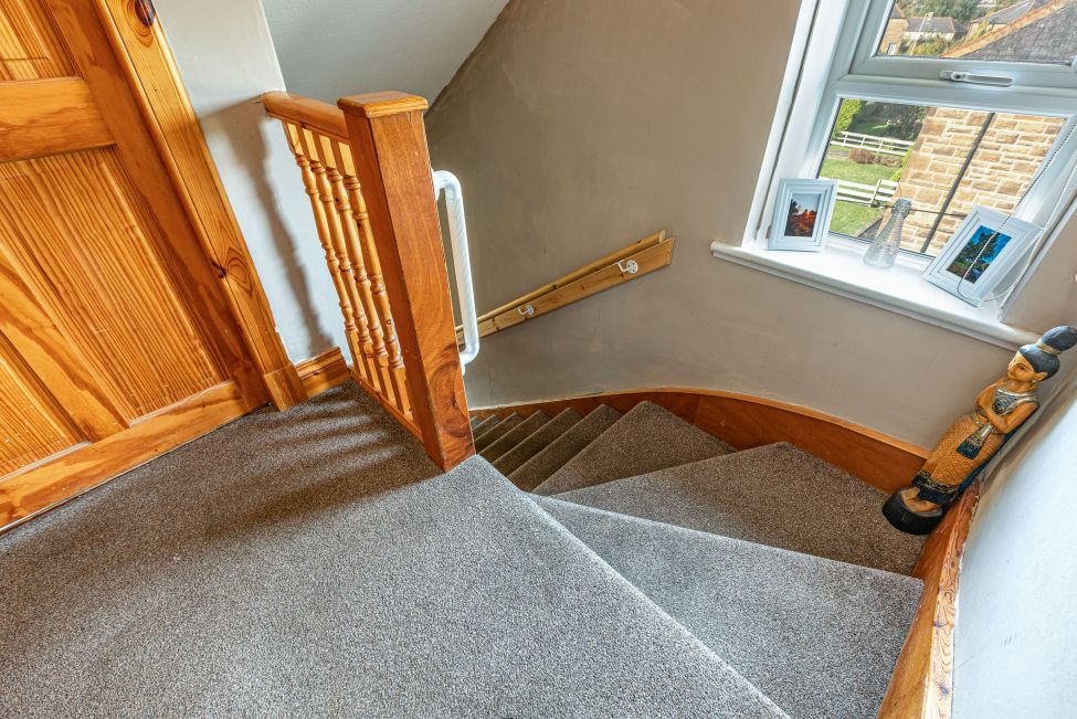 Front door leading into entrance hallway with wide stairwell leading to upper floor accommodation and door to Living Room.